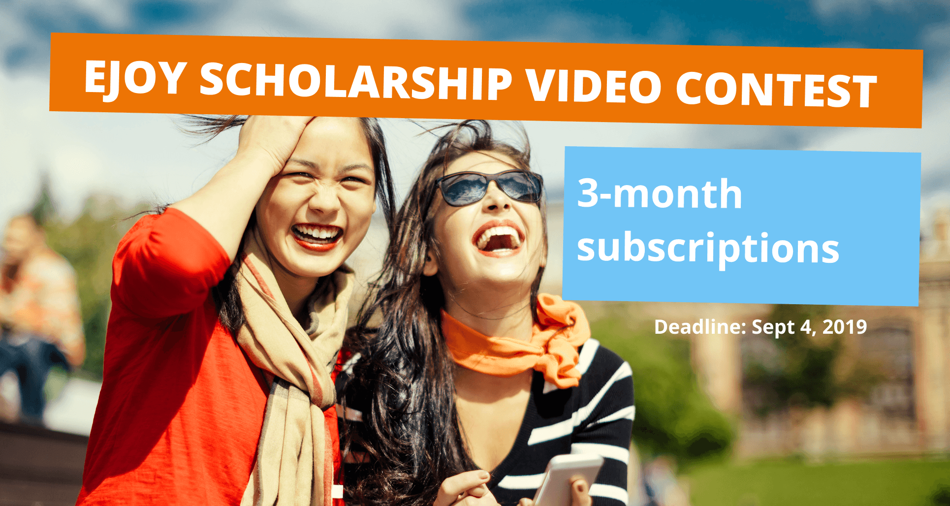 As the new school year approaches, we want to make sure you’ve got a semester filled with success. That’s why we’ll award 100 three-month subscriptions, each worth $44.97 to those who enroll in eJOY Scholarship Video Contest.