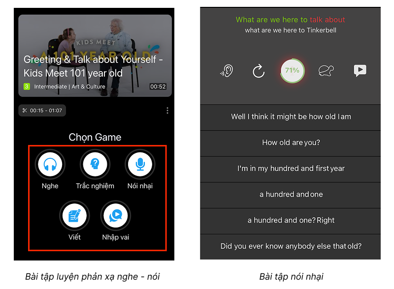 Tất cả các bài tập trong video này đều phản hồi đáp án cho bạn ngay sau khi chơi để bạn biết mình đã sai ở đâu và làm lại. Ở giai đoạn này, bạn không cần áp lực phải đúng 100%, nhất là với bài tập Speak - Nói nhại. Chỉ cần bạn mở miệng ra nói đã là thành công rồi.