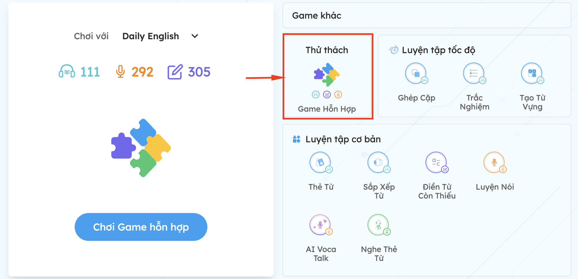 Để ghi nhớ sâu những từ vựng bạn đã lưu từ khóa học hay bộ video, hãy ôn từ vựng với game hỗn hợp. Việc này giúp bạn: