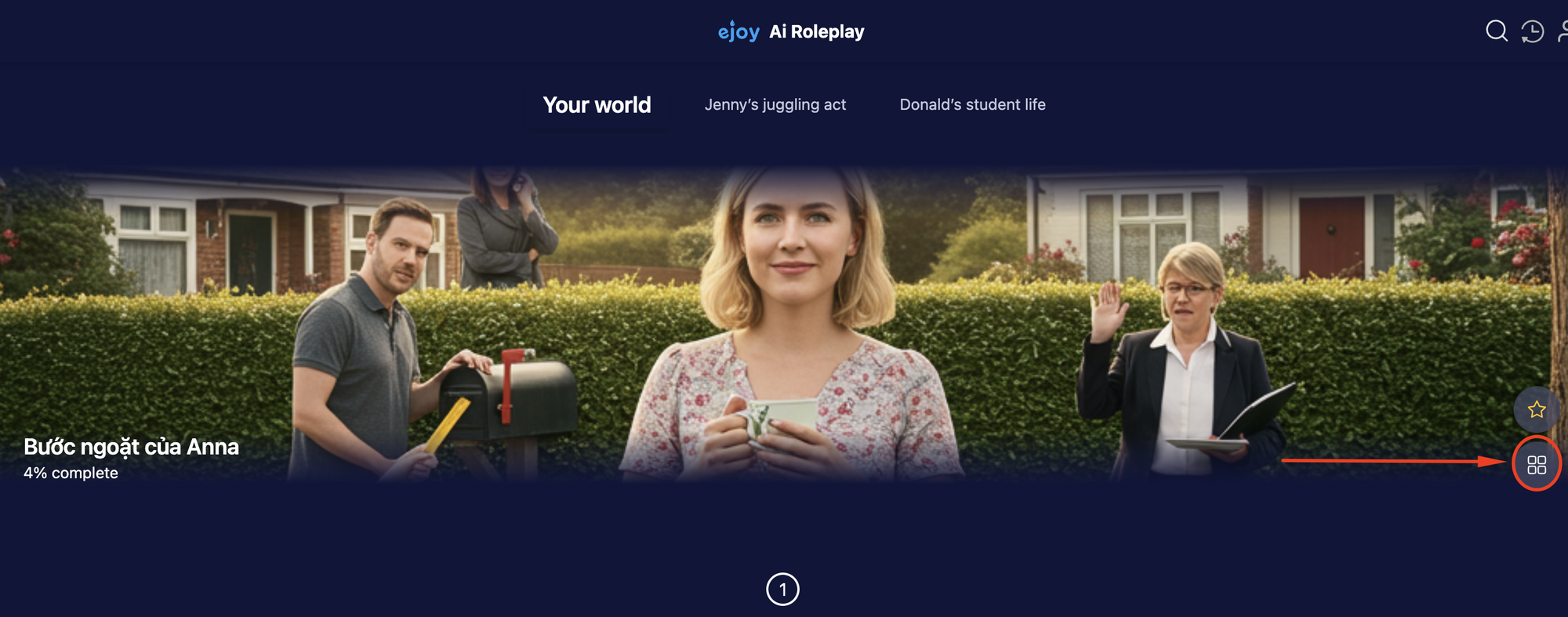 • B3: Ấn biểu tượng ô vuông, chọn thế giới  “Người học tiếng Anh”
