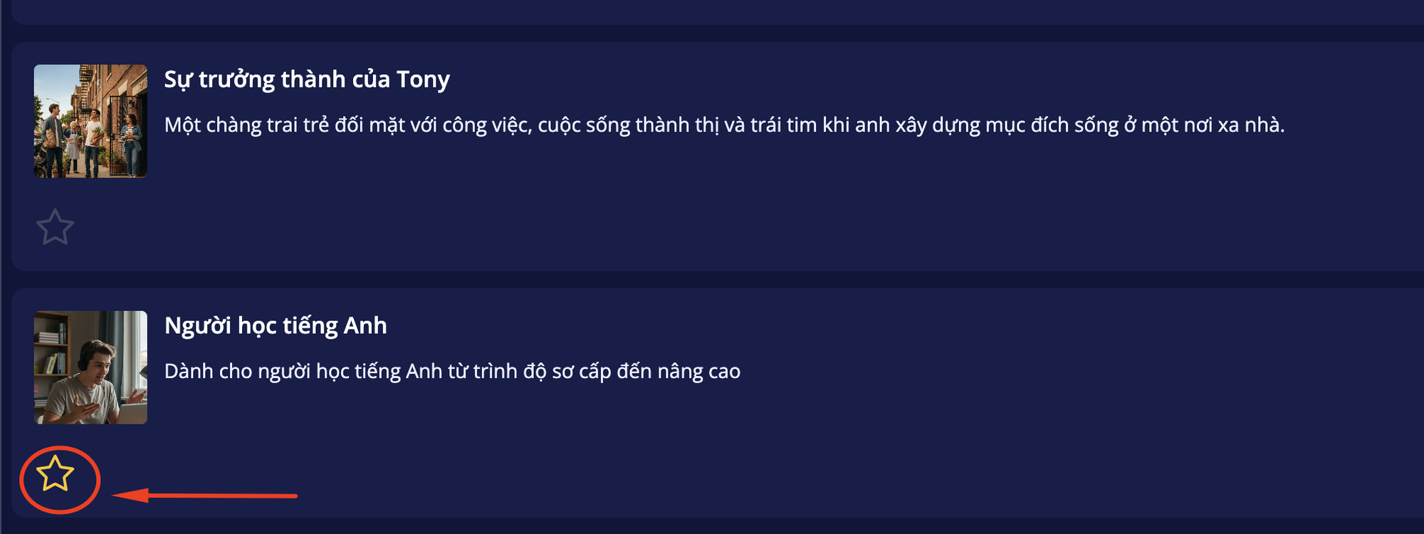 • B4: Ấn dấu Sao bên dưới thế giới Người học tiếng Anh để đặt là mặc định. Những lần truy cập tiếp theo, bạn sẽ không cần làm lại bước 1, 2 và 3.