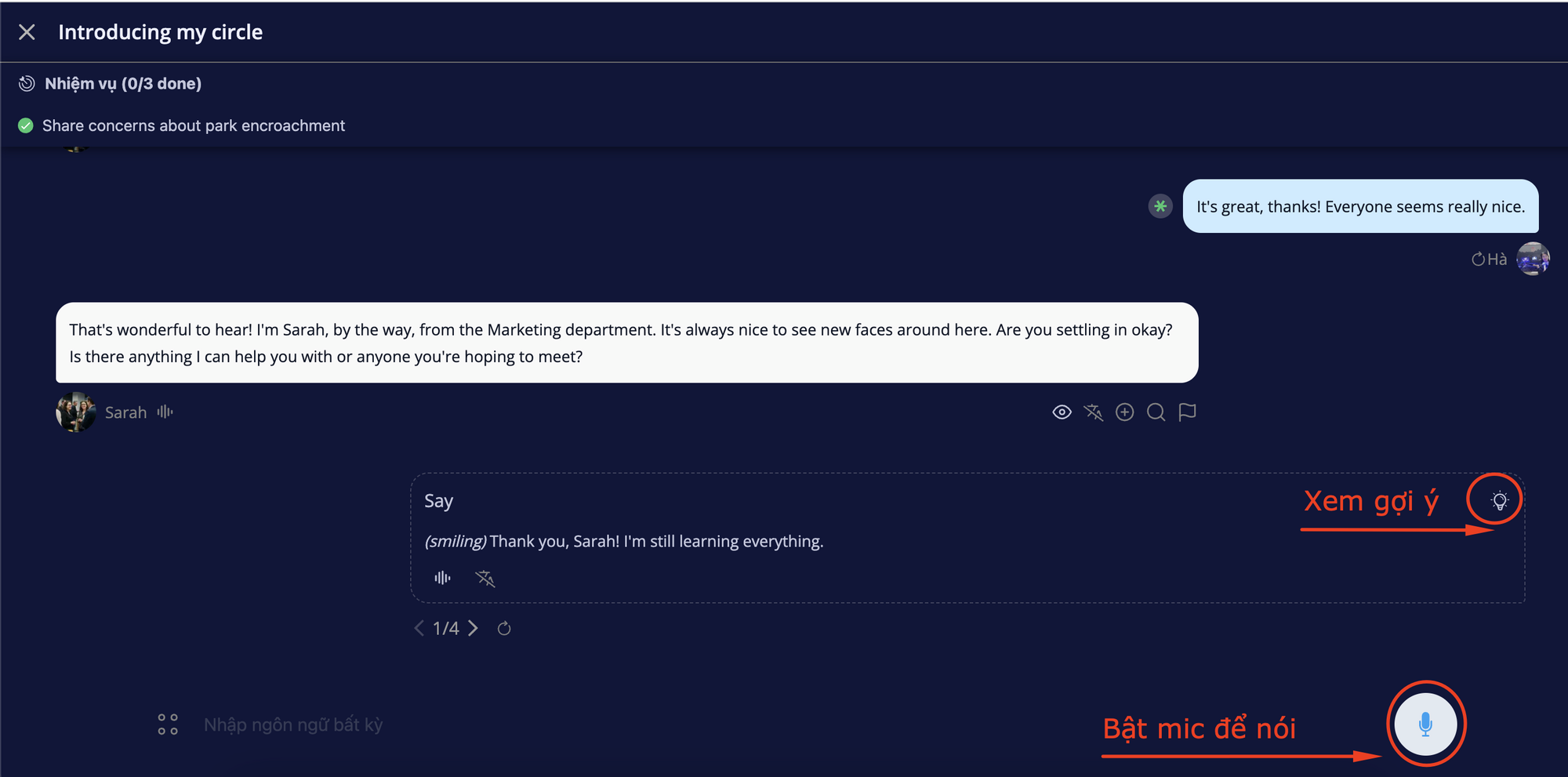Bạn có thể xem hướng dẫn chi tiết cách luyện nói với AI ở ĐÂY.