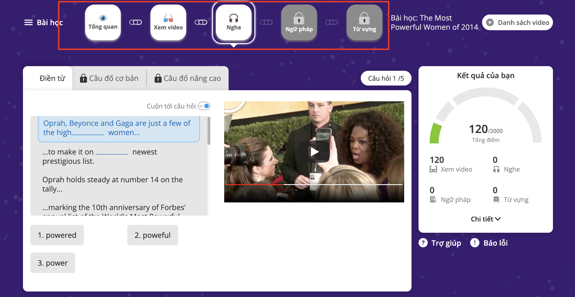 Các video bài học trên EPIC giúp bạn học luyện nghe, học từ vựng và ngữ pháp theo ngữ cảnh thực tế. Ở giai đoạn này, hãy đặt mục tiêu hoàn thành 100 video bài học EPIC.