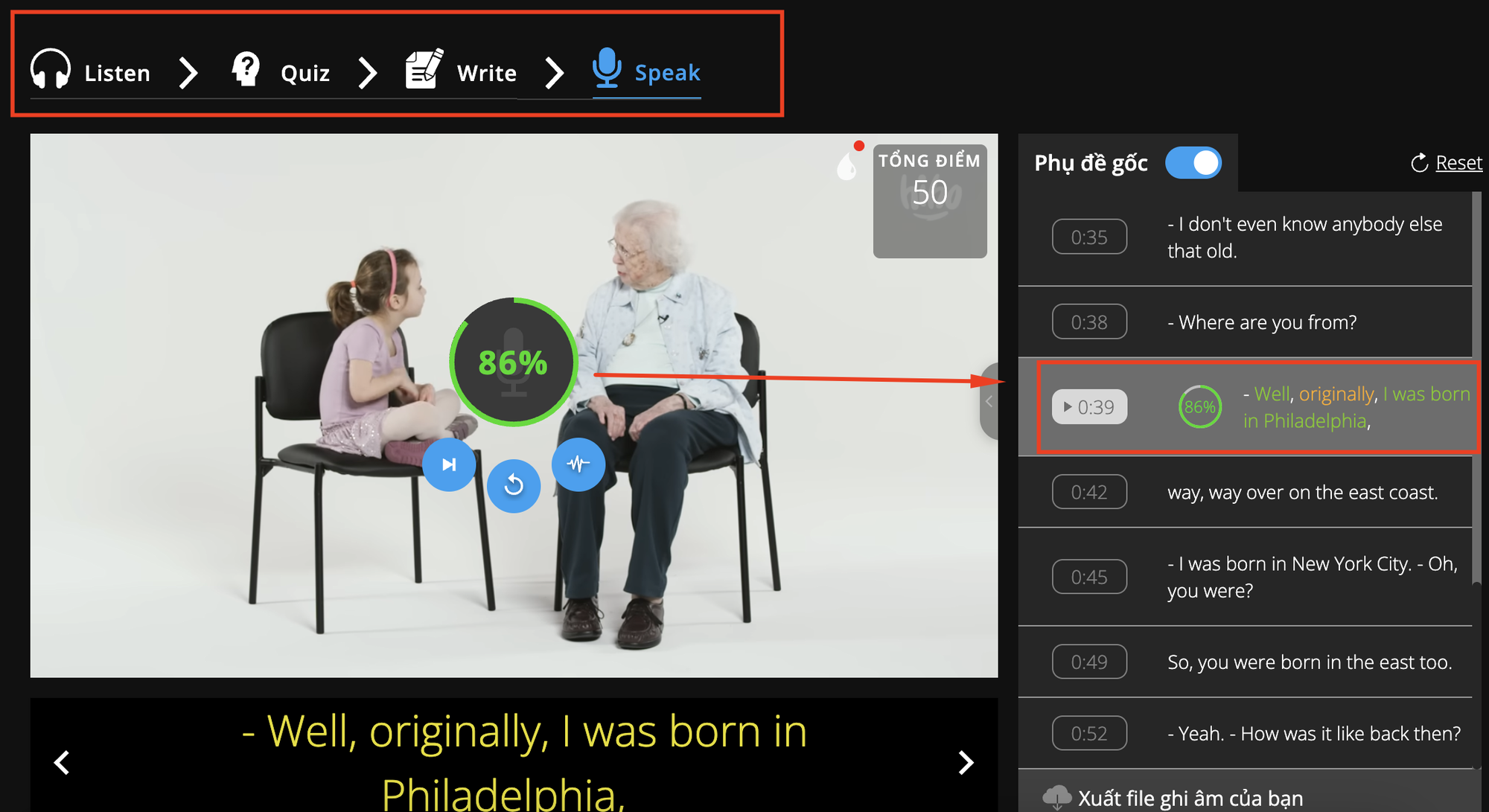 Sau khi luyện tập xong với EPIC, bạn có thể luyện tập thêm kỹ năng nghe - nói với cùng video trên EPIC.