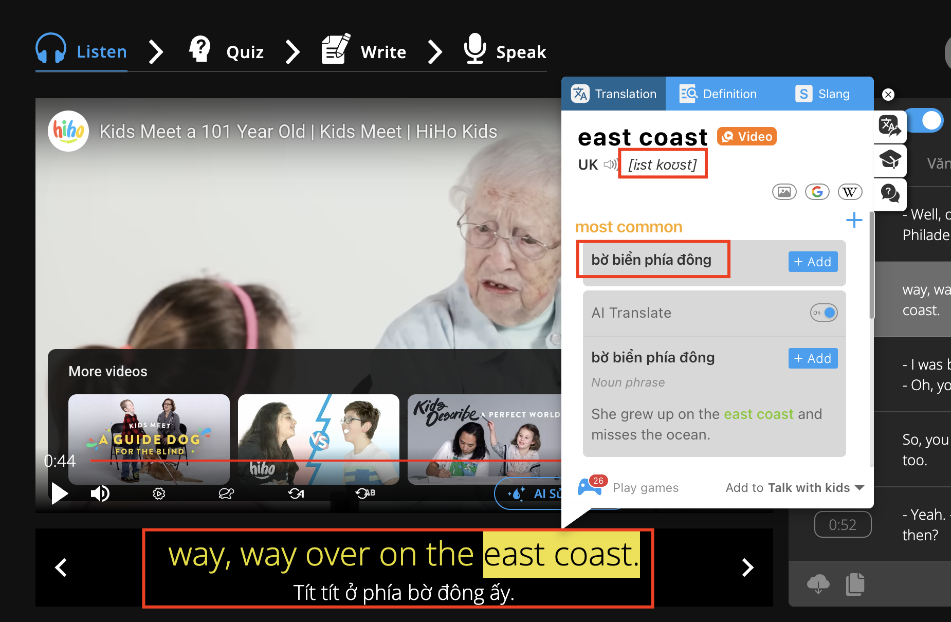Nhiệm vụ của bạn là nghe đi nghe lại đến khi hiểu nội dung video. Ở những lần đầu xem video, bạn có thể cần phụ đề song ngữ và tra từ mới để hiểu video nhanh hơn.