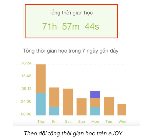 Khi đã hình thành thói quen học mỗi ngày, bạn bắt đầu tăng dần thời gian và đa dạng hoạt động học. Để dễ dàng đo lường và duy trì động lực, hãy theo dõi thời gian tích lũy trên app eJOY để đến với đích 200 giờ.