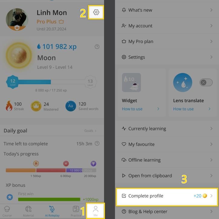 - Hoàn thành hồ sơ của bạn trong mục Profile để nhận 20 coin