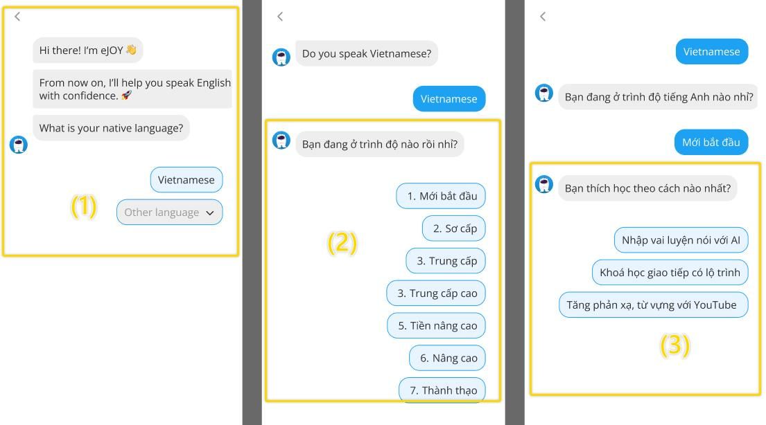 Những thông tin này giúp eJOY gợi ý bài học phù hợp với trình độ, sở thích của bạn.